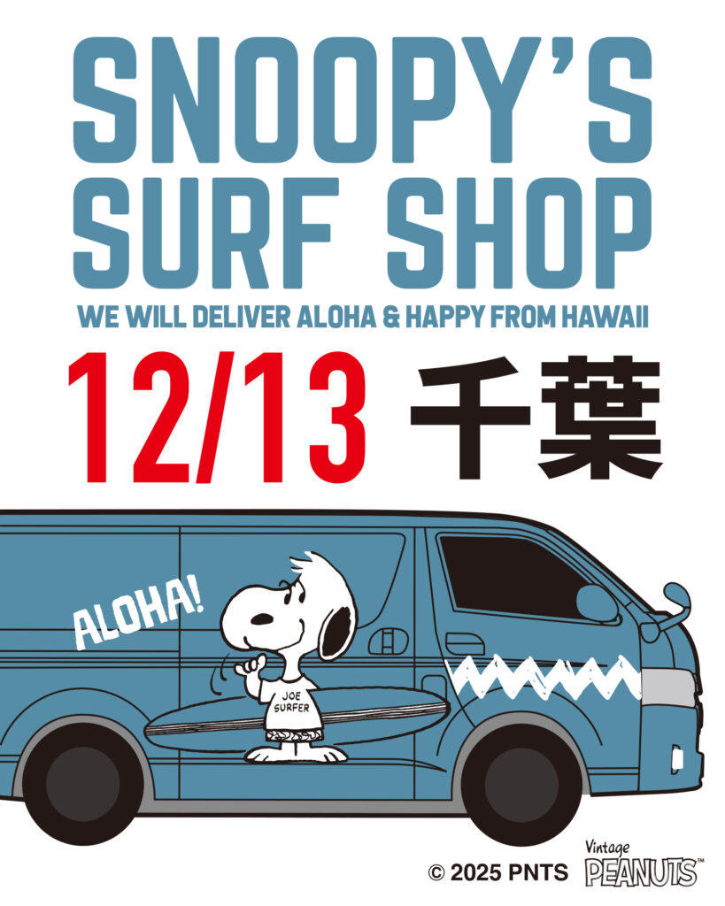 12/13(土)のSNOOPY’S SURF SHOP移動販売は、千葉県千葉市、イオンマリンピショッピングセンターに停車いたします。