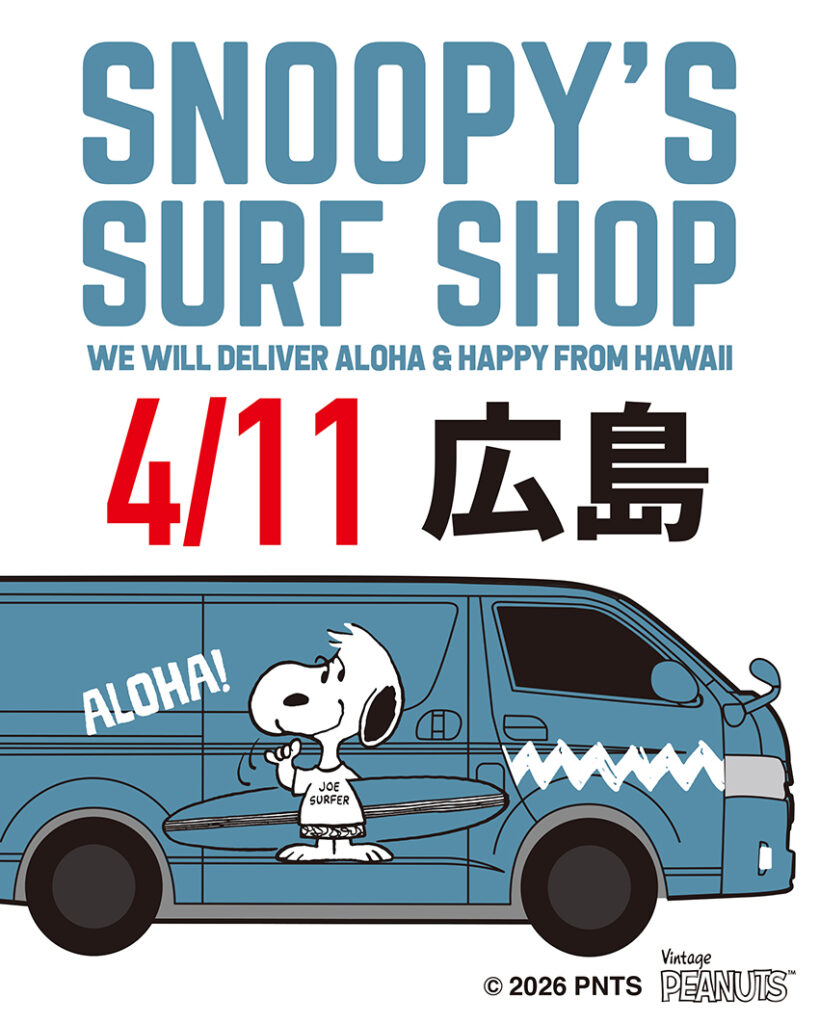 4/11 (土)のSNOOPY’S SURF SHOP 移動販売は 広島県広島市に停車いたします!