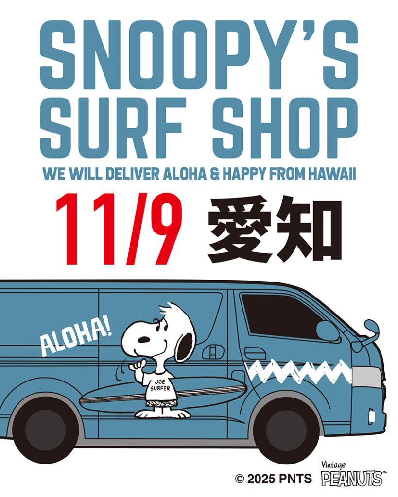 SNOOPY’S SURF SHOP Pop-Up Wagon will be stopping in Kasugai City, Aichi Prefecture on Sunday, November 9.