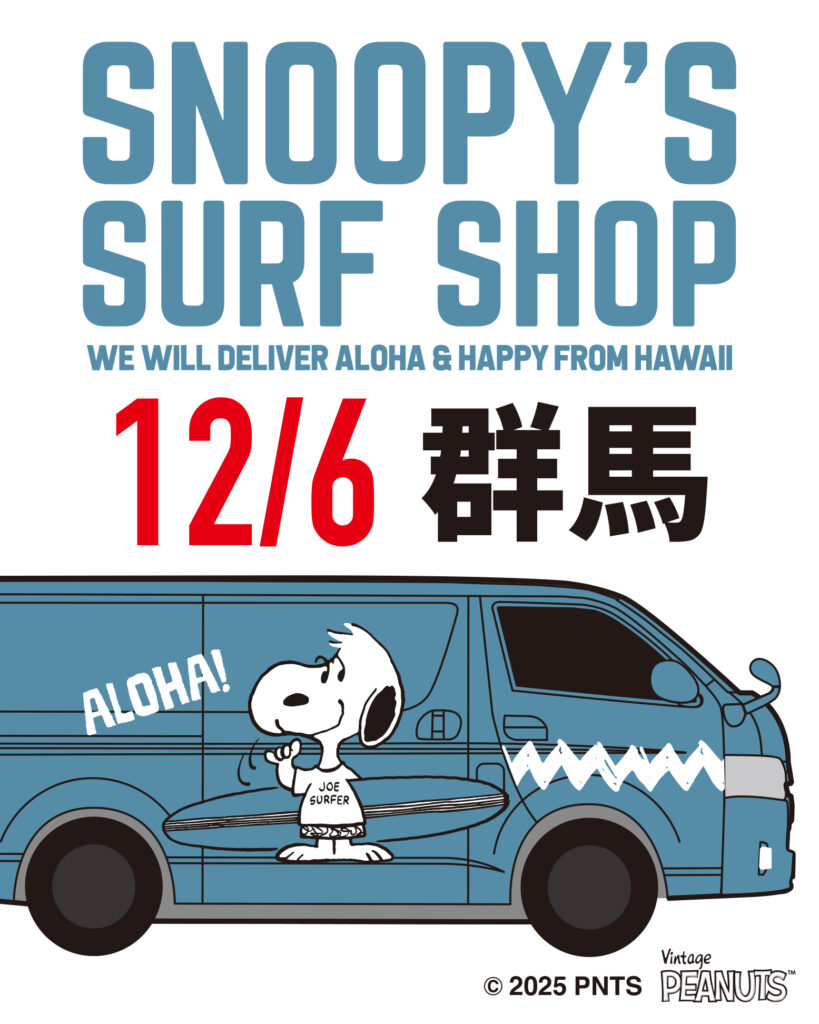 12/6(土)のSNOOPY’S SURF SHOP移動販売は、群馬県前橋市、けやきウォーク前橋に停車いたします♪