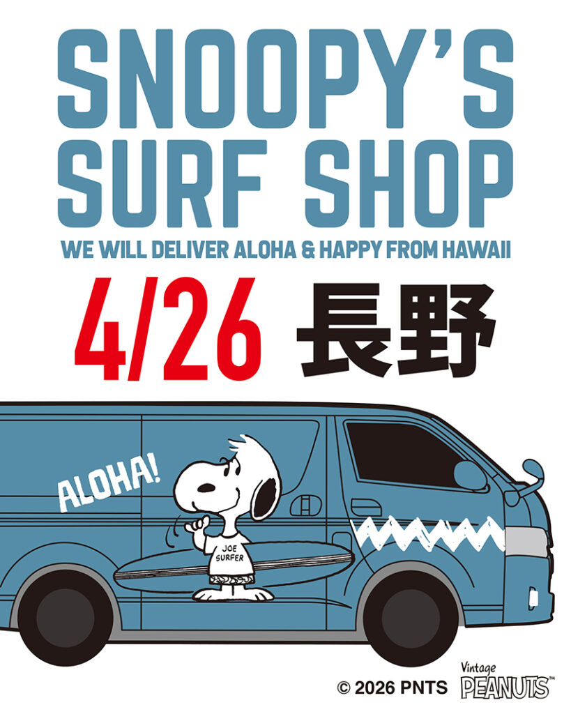 4/26 (日)は、SNOOPY’S SURF SHOP 移動販売は長野県飯田市 に停車いたします!
