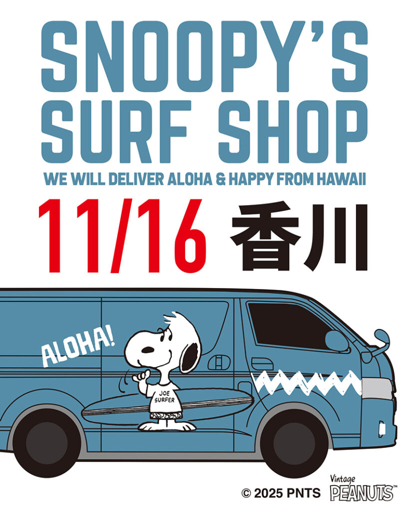 SNOOPY’S SURF SHOP Pop-Up Wagon will stop in Takamatsu, Kagawa on Sunday, November 16 at AEON MALL Takamatsu.