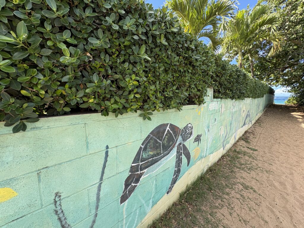 ビーチまでの小道の壁にアーティスの絵が描かれているのを発見しました