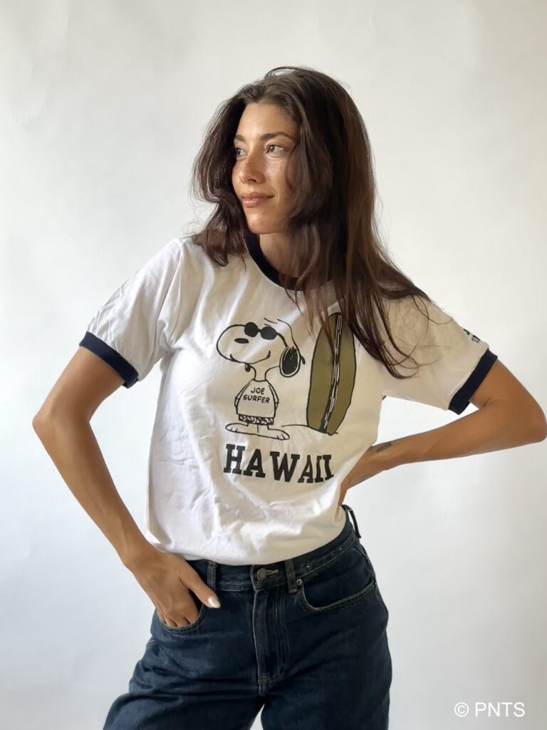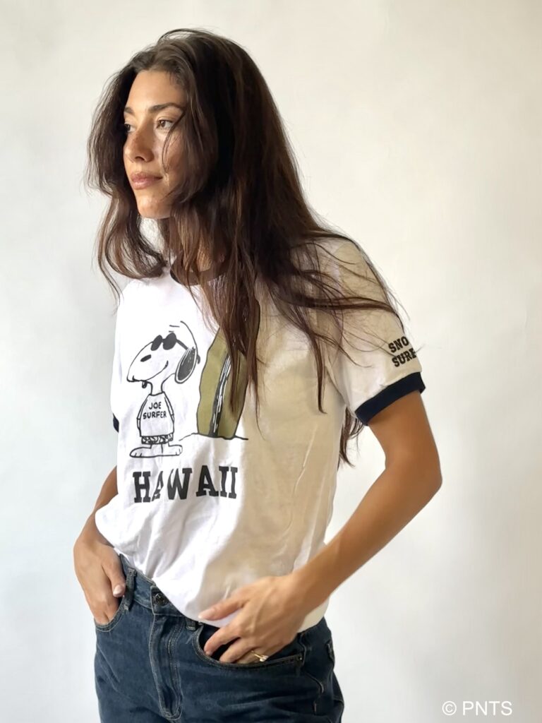 首元と袖の配色が特徴のこのスタイルに、 Joe SurferのSnoopyをプリント🌊
