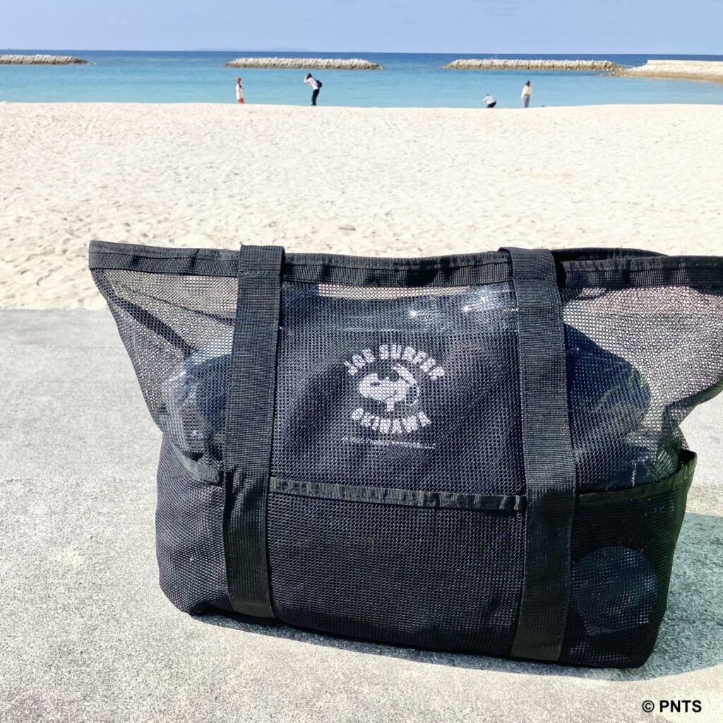 海やプールに行くときにおすすめのメッシュバッグ。